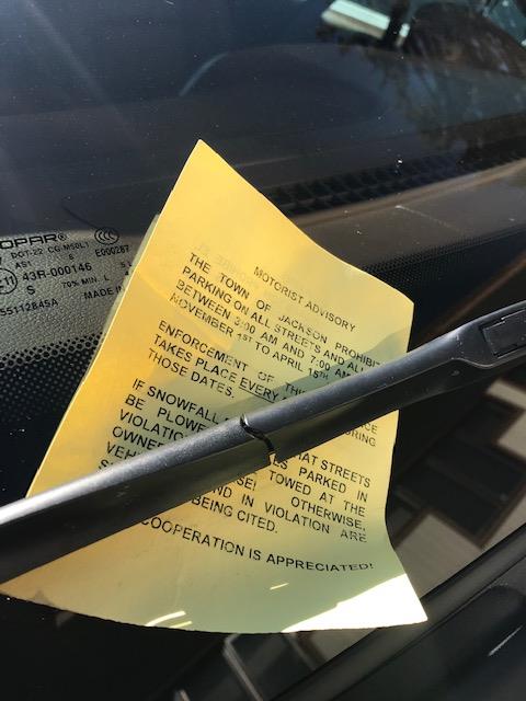 The Jackson Police Department has started leaving yellow reminder notifications on the windshields of cars parked overnight on Town streets. Beginning Thursday, November 1st winter parking restrictions will be in effect within the Town of Jackson. The winter parking…